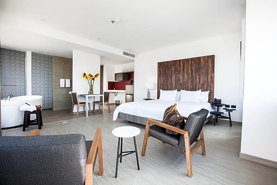 This suite's special feature is the hot tub. The air-conditioned suite features 1 bedroom and 1 bathroom with a bath and a shower. The suite provides soundproof walls, a mini-bar, a tea and coffee maker, a flat-screen TV with streaming services, as well as city views. The unit offers 1 bed.